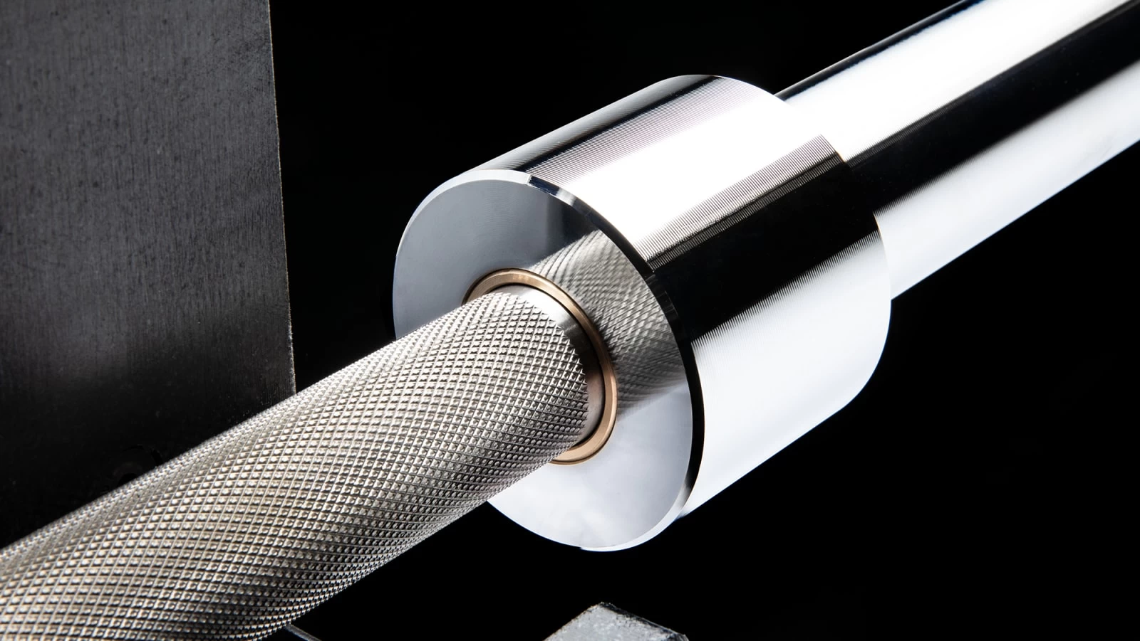 At a length of 94.49”, the Squat Bar is considerably longer than a standard Oly bar (our Ohio Bar is 86.75”), with 56” between the sleeves and a loadable sleeve length of 16.795” (vs. 16.4” on the Ohio Bar). The 32mm diameter stainless steel shaft has a tensile strength of 200,000 PSI, and the knurling runs across its entire length, with clearcut powerlifting marks and a center mark included. The aggressive knurl pattern ensures a firm grip without being sharp or abrasive.