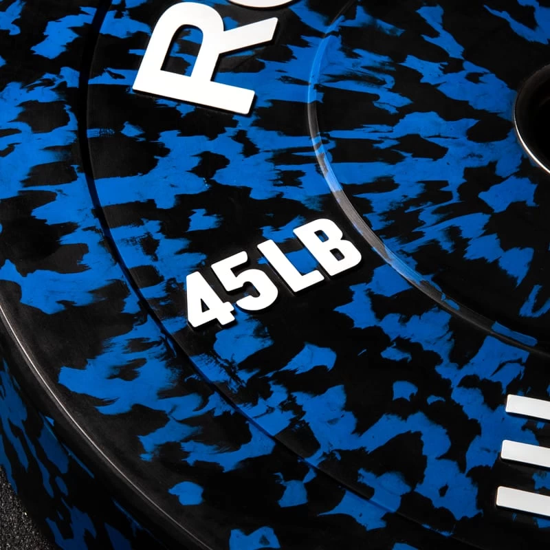 Rogue’s 90 durometer LB Fleck Plates are equipped with a 304 stainless steel hub insert (50.4mm diameter) and held to a strict +/- 1% weight tolerance standard. Built for long-term durability and minimal bounce on the drop, these quality bumpers also include a new black + color fleck finish—- a nice change-up from traditional full color plates that still offers easy plate weight identification from a distance.