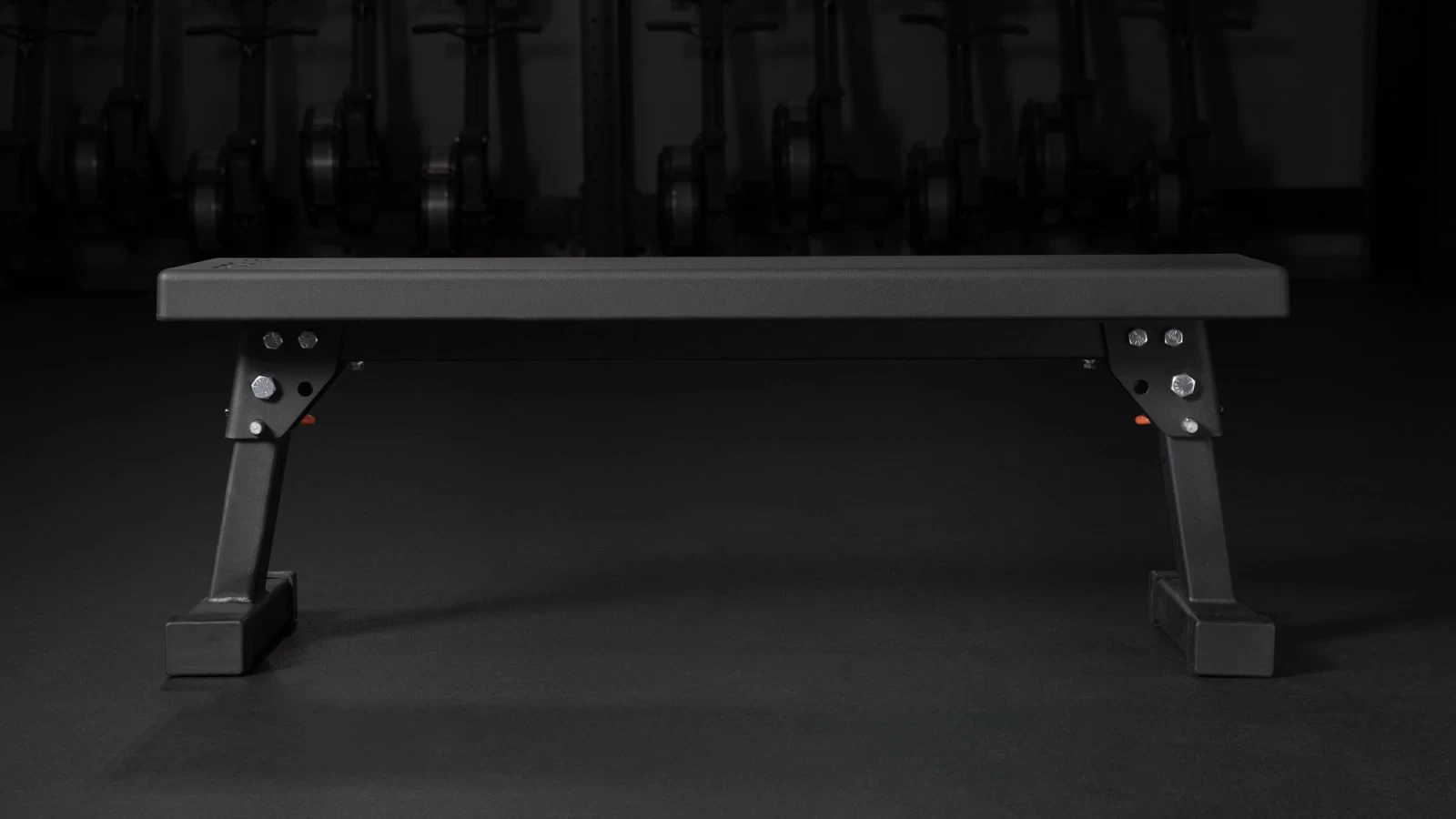 Importantly, this storage-friendly design has required no sacrifices on the manufacturing end, as the Fold-Up Utility Bench still offers the same solid foundation as our standard Flat Utility Bench, with a 2×3” 11-gauge steel frame and rubber feet to protect your flooring and prevent sliding. The wide-set leg angle is also retained for superior stability, while the (2) orange-handle detent pins make it easy to lock the bench legs in either the unfolded or folded position.