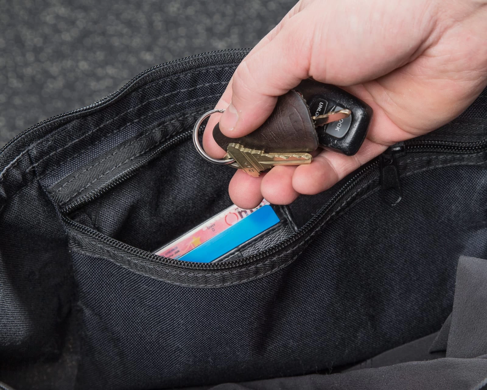 | Other Product Specs | Zipper: YKK 580 zipper & pull Hardware: Black finish metal D rings Strap Loop Length: 15” External Pocket: 7”W x 7.5”H Internal Zippered Pocket: 10”W x 7.5”H, YKK 550 zipper & pull |