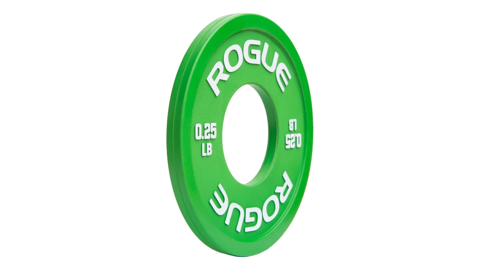 Rogue’s newly redesigned LB Fractional Plates are sold in pairs or full 5LB sets, with weight increments of 0.25LB (green), 0.50LB (yellow), 0.75LB (blue), and 1LB (red). Each plate features a 50.40MM collar opening and an exterior rubber coating for a firm, steady hold on any standard Olympic barbell. A quality matte finish and raised white lettering give the plates a bold look, with easy recognition from a distance.