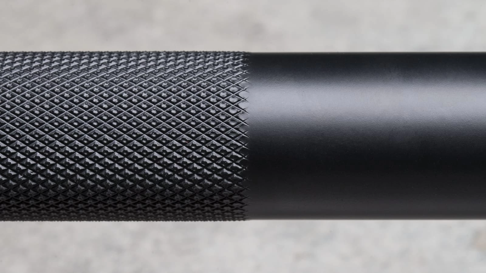 The Ohio Deadlift Bar’s sleeves feature a quality snap ring construction—far superior to the cheaply produced bolt-and-pin style sleeves of some other brands. The powerlifting knurl marks on this bar are a bit deeper / more aggressive than our Ohio Power Bar, but machined in the same pattern. There is no center knurl.