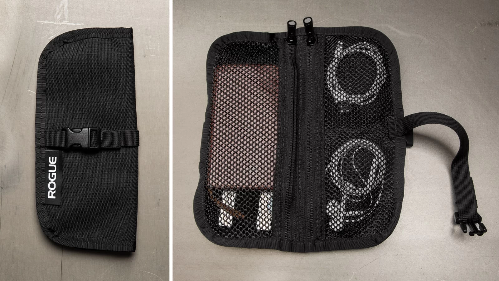 Measuring just over 4” wide in the closed position, Rogue’s durable Roll-Up Tool Kits are great for safely stashing small tools and hardware, gym accessories, personal items (wallet, keys, etc.), and loads of other odds and ends. All kits are assembled and sewn at our Columbus, Ohio factory, and feature a 1000D Kordura exterior, Raschel knit mesh interior lining, and adjustable plastic buckle closure.