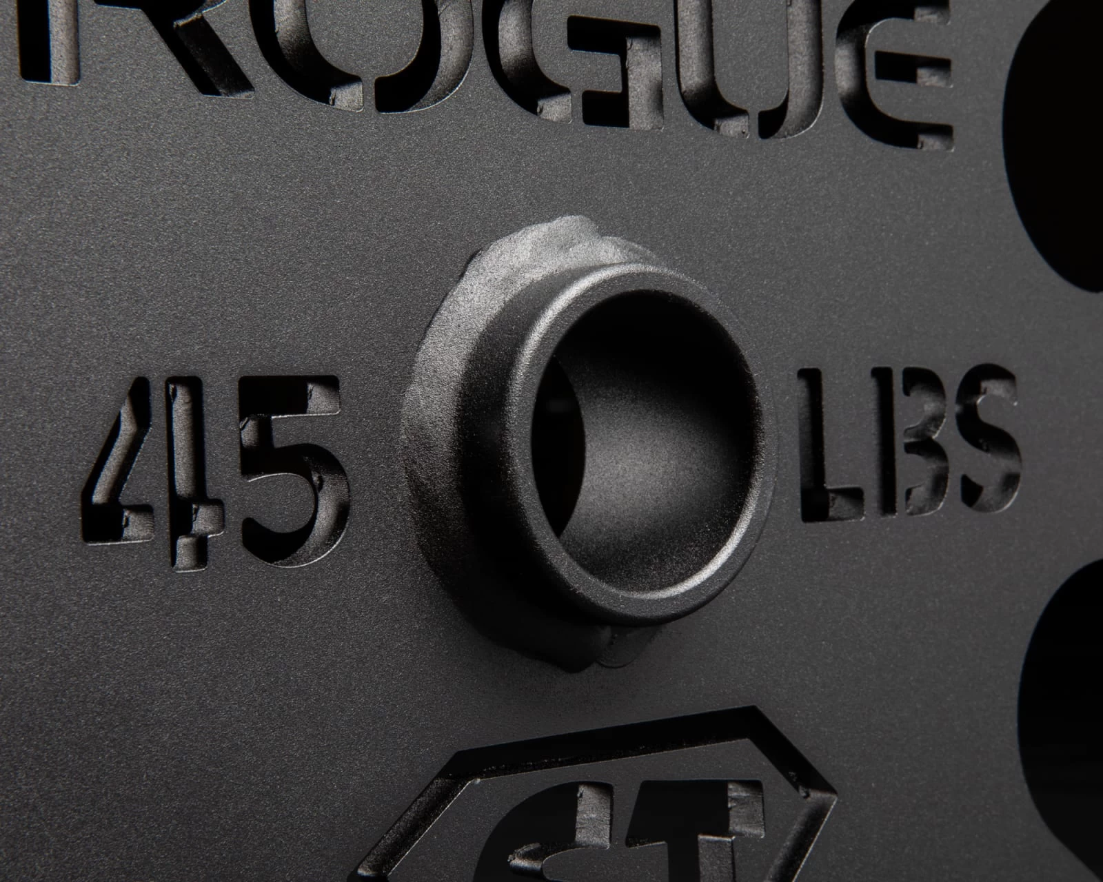 Co-developed with award-winning powerlifting coach Mark Bell, Rogue Wagon Wheels represent a new innovation in deadlift training—a way to do block pulls without the blocks. The project started with a simple question: does a 45LB plate have to be the standard 450MM in diameter? Once the clear answer was “no,” we set to work with Mark to create a durable, over-sized 45LB plate that could produce many of the same essential benefits of using blocks.